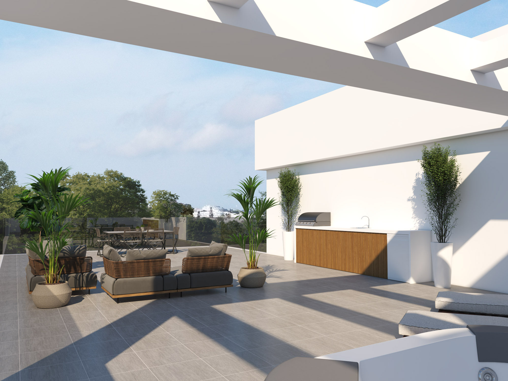 Apt. | BDR | Interior sqm | Covered verandas sqm | Roof garden sqm | Storage sqm | Bathrooms | Parking | Total sqm |