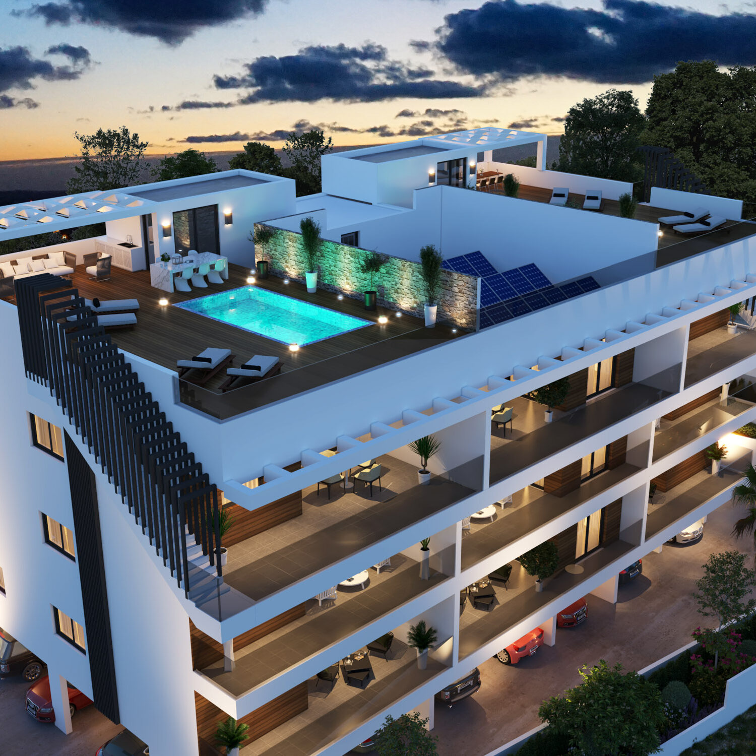Apt No | BDR | Interior sqm | Covered verandas sqm | Roof Garden sqm | Storage sqm | Bathrooms | Parking | Total sqm |